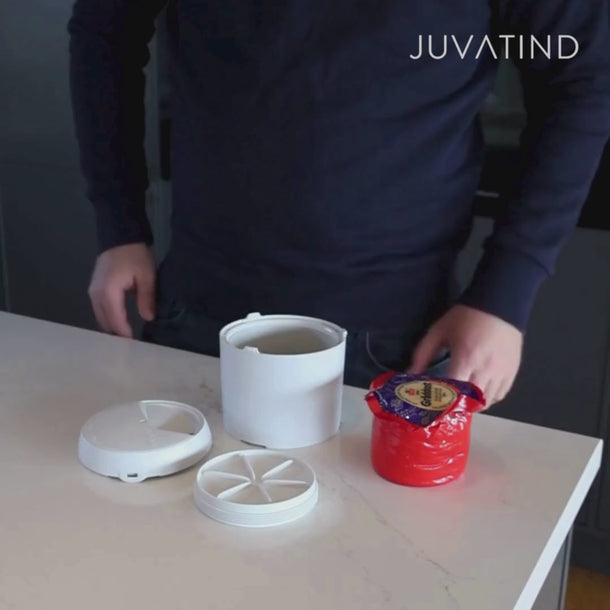 Gjør Hverdagen Enklere. Med Juvatind Grädd blir skjæring og oppbevaring av Gräddost en lek. Den integrerte skjærefunksjonen og den beskyttende klokken gir deg en komplett løsning for å nyte osten til enhver tid.